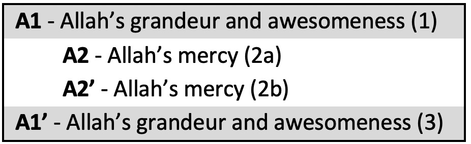 Taking a macro-view of the entire sūrah, it appears to be organized in a ring structure, with the theme of worship permeating throughout4.