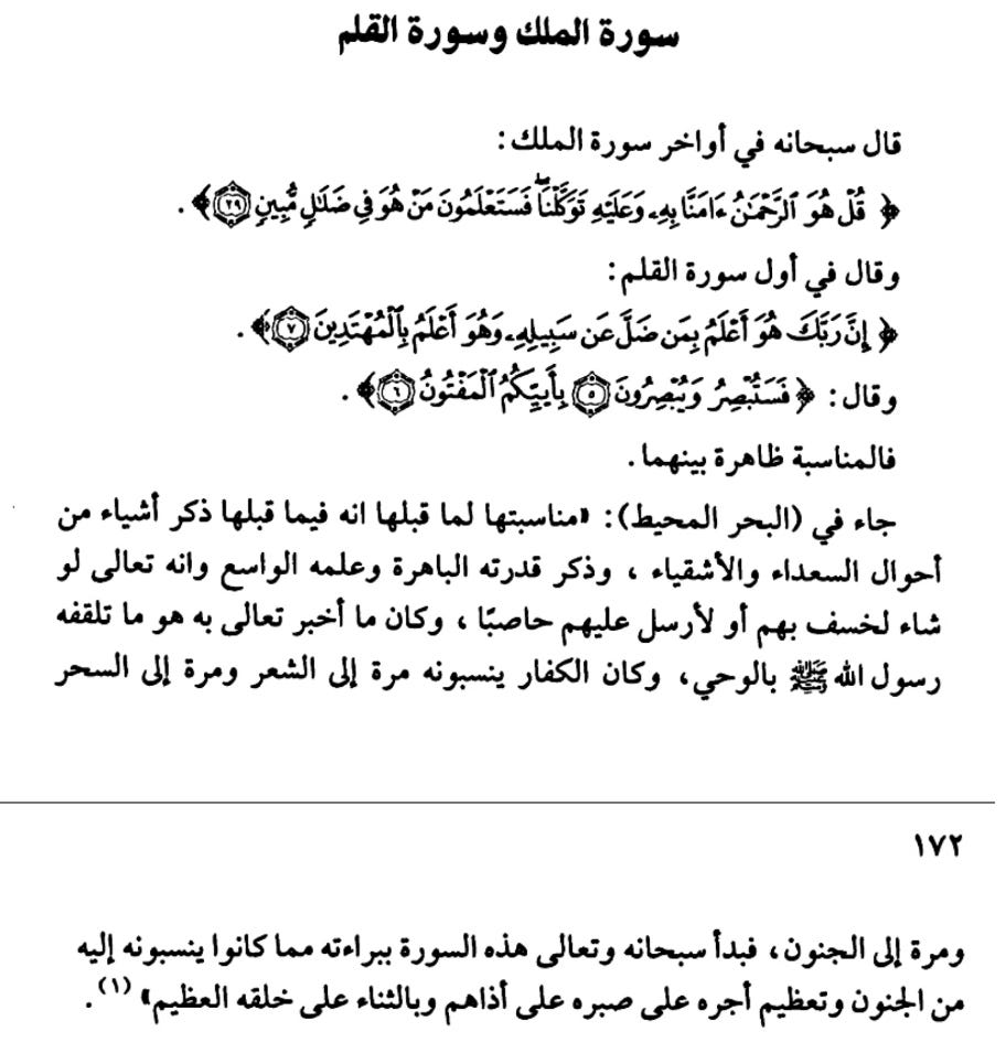 Sometimes we also read the connections Dr. Fāḍil Ṣālih made, in the same book, of how the end of the previous sūrah leads into the beginning of the next sūrah. So in the case of this study, we took notes on how Sūrah al-Mulk’s ending leads into the beginning of Sūrah al-Qalam.