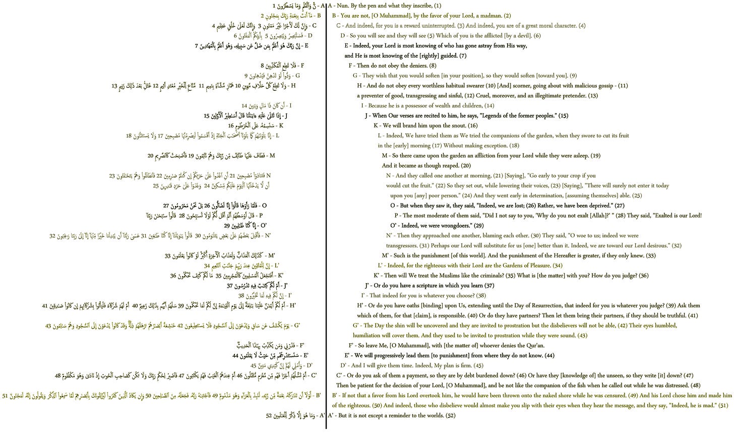 The following is an example of the types of posts we will be sending out to paid subscribers of the newsletter. If you are interested in learning about the research that goes into discovering possible structures to suwar (and a free E-book copy of Heavenly Order once it is done being written), please consider supporting this newsletter by subscribing below!