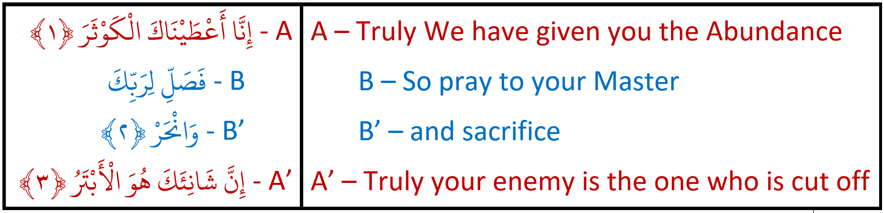 Sūrah al-Kawthar is a small mirror structure, consisting of only three short āyāt: