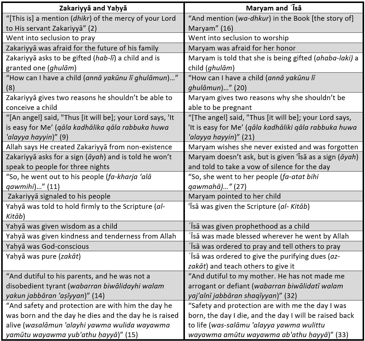 Parallels Between Zakariyyā & Yaḥyā and Maryam & ʿĪsā