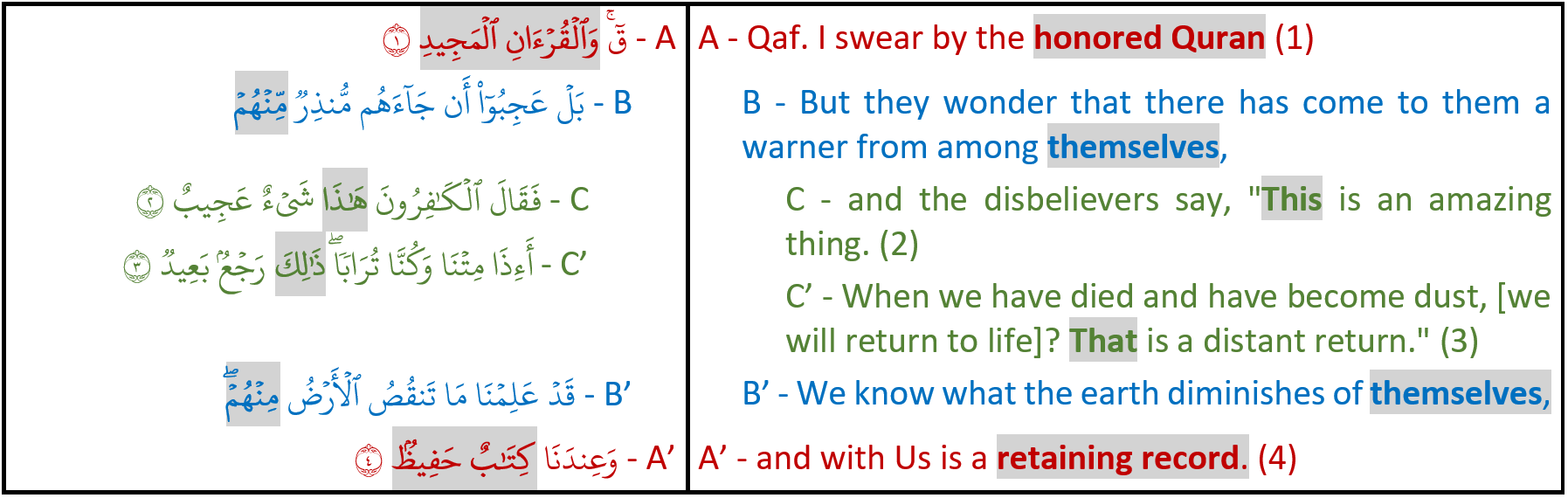 Last week we observed the macro-structuring of Surah Qaaf (Qaaf). This week we’ll conclude by looking at the micro-level.