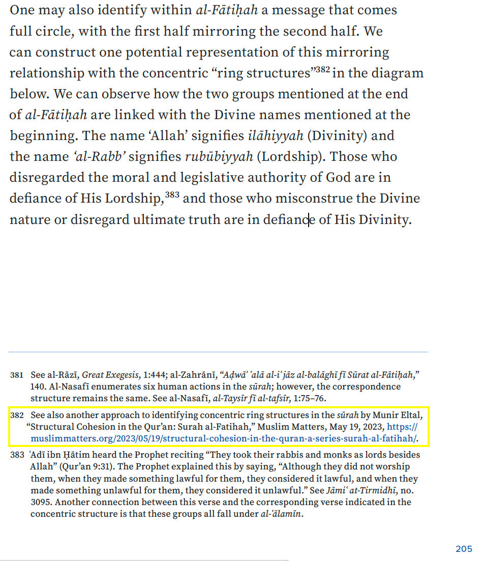 Adding another layer to the research already published on this blog, Dr. Nazir Khan of Yaqeen Institute has published a fresh take on the structure of Sūrat al-Fātiḥah as part of his new book, “The Straight Path: How Surah al-Fatiha addresses modern ideologies”.
