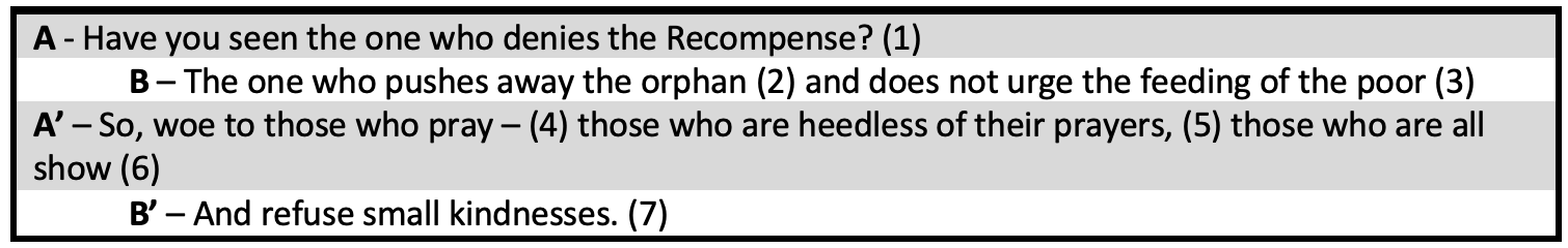 Sūrat al-Māʿūn appears to be a sūrah of two parallel halves.3